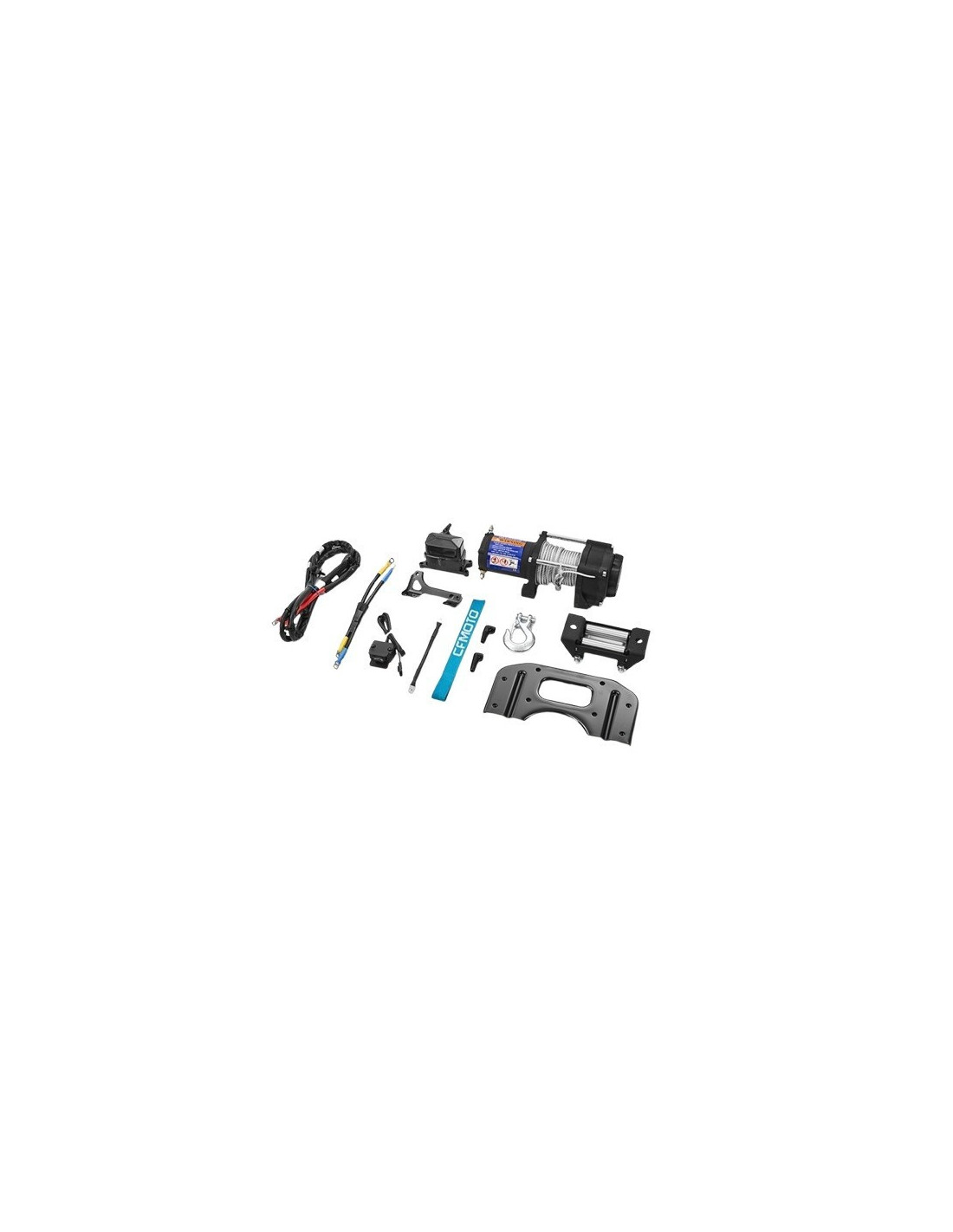 Features:winch kit can be easily installed on the wired vehicle.50 ft. of 3/16@@ (15.2 m) wire steel cable.Pulling strength capability of 2,500 lb (1,134 kg).Heavy-duty four-way roller fairlead.Rugged all-steel gears and bushings provide more torque and longer life.Sealed solenoid for all-weather protection.Wired remote control, wireless remote control, fairlead and synthetic rope are accessories of the winch kit. They are sold separately.