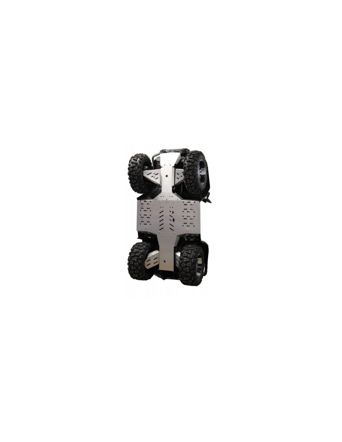 Večdelni ščit ATV CF Moto X8 - izdelan iz 4 mm trpežnega in lahkega aluminija, teža 19 kg, nudi zaščito za šasijo + sprednje in zadnje A-roke, z odprtinami za dostop za enostavno vzdrževanje, menjavo olja, praznjenje in namestitev kompletov za montažo dodatne opreme Iron Baltic in Cycle Country.